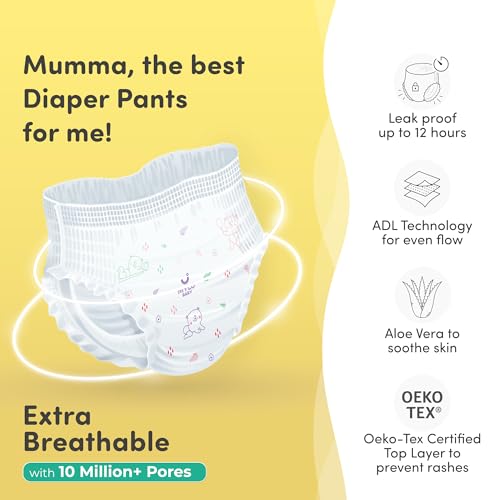 HIGHLY ABSORBENT These diaper pants for babies are highly absorbent & provide up to 12 hours of leak protection. They are breathable & apt for wearing through the night for uninterrupted sleep & during travelling. They provide the baby with anti-Leak - 36