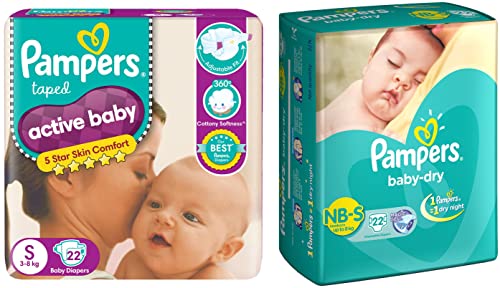 Pampers Active Baby Diapers, Small, 22 Count & Pampers Baby Dry Diapers, New Born, 22 Count