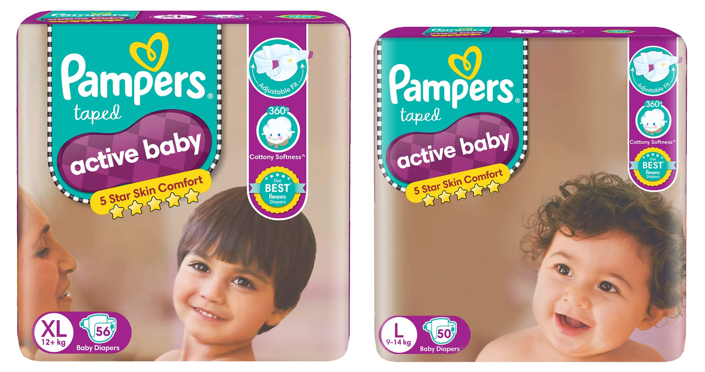Pampers Active Baby Diapers, Xl, 56 Count&Pampers Active Baby Diapers, Large, 50 Count