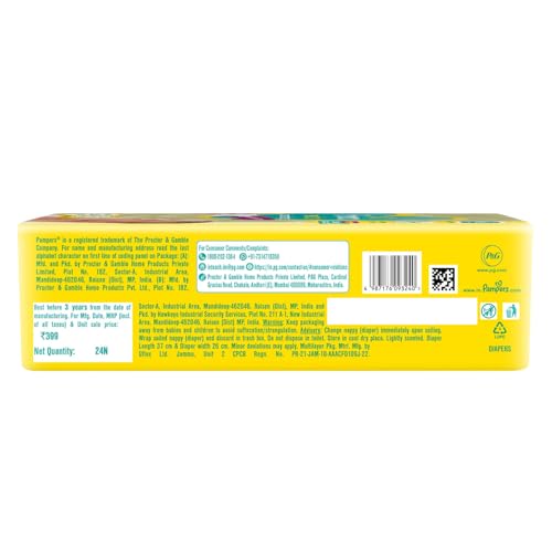 5 Star Skin Protection: The Best tape style diapers from Pampers with an outer layer of cotton-like softness this baby diaper provides intense care to your baby's sensitive skin and protects it effectively from friction rash and redness. These soft and comfort fitting diapers with stretchable sides are best for your baby's rest and playtime. The diaper's fastening tape sticks multiple times thus ensuring it stays in place even after you fasten it after checking your baby's diaper. Protection and nourishment of your baby's skin are taken care of with extracts of moisturizing Aloe Vera lotion characteristic of these best baby diapers.. These diapers are ultra-thin thanks to the absorbent gel material (AGM) commonly known as Magic Gel. This magic gel core of Pampers diapers is highly effective in absorbing frequent wetness. Naturally your baby's skin remains dry for upto 12 hours now no more frequent diaper changing or blow leaks for your little angel.