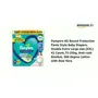 Pampers All Round Protection Pant Style Baby Diapers are available in New born (NB) Small (S) Medium (M) Large (L) X-Large (XL) XX-Large (XXL) XXX-Large (XXXL) sizes. NEW and IMPROVED Pampers all round protection pants have ANTI RASH BLANKET* containing Lotion with Aloe Vera to keep your baby skin protected from redness and rashes. Top quality diaper pants with Up to 100% WETNESS LOCK keeps the pee locked inside and baby's bum stays dry for ALL NIGHT. Air channels & stretchy belt provides your baby breathable airy fit comfortable even in summers. Pampers unique Magic gel technology provides up to 12 hours of dryness and has up to 2X faster absorption The new and improved design has an EXTRA SOFT material and a fit that adapts to baby movements for best comfort. Our pants with fun exterior graphics fun designs of characters and a delightful fresh Aloe fragrance ensures you enjoy every change with your baby (*Blanket refers to soft topsheet with lotion Helps prevent rash due to wetness after 1 day of usage based on clinical studies in USA 2000 2019)