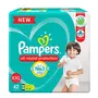 Pampers All round Protection Pants Double Extra Large size baby diapers (XXL) 42 Count Anti Rash diapers Lotion with Aloe VeraNEW & IMPROVED Pampers all-round protection pants have ANTI-RASH BLANKET* containing Lotion with Aloe Vera to keep your baby skin protected from redness irritation and rashes. quality diapers with 100% WETNESS LOCK keeps the pee locked inside & baby's bum stays dry for ALL NIGHT. Air channels & stretchy belt provides your baby breathable airy fit - comfortable even in summers. Pampers unique Magic gel technology provides up to 12 hours of dryness and has 2X faster absorption. The new and improved product design enables a comfortable fit closer to the baby body and an EXTRA SOFT flexible waist band that adapts to baby movements for best comfort. Available in all sizes Small diapers medium diaper pants large size diaper pants XL diapers XXL diapers XXXL diaper pants. A top layer with cotton-like soft material ensure a comfortable night sleep. Our pants with fun exterior graphics fun designs of characters and a delightful fresh Aloe fragrance ensures you enjoy every change with your baby. (*Blanket refers to soft topsheet with lotion. Helps prevent rash due to wetness after 1 day of usage based on clinical studies in USA 2000-2019).Pampers Taped Baby Diapers Small (SM) 22 countNEW & IMPROVED Pampers all-round protection pants have ANTI-RASH BLANKET* containing Lotion with Aloe Vera to keep your baby skin protected from redness irritation and rashes. quality diapers with 100% WETNESS LOCK keeps the pee locked inside & baby's bum stays dry for ALL NIGHT. Air channels & stretchy belt provides your baby breathable airy fit - comfortable even in summers. Pampers unique Magic gel technology provides up to 12 hours of dryness and has 2X faster absorption. The new and improved product design enables a comfortable fit closer to the baby body and an EXTRA SOFT flexible waist band that adapts to baby movements for best comfort. Available in all sizes Small diapers medium diaper pants large size diaper pants XL diapers XXL diapers XXXL diaper pants. A top layer with cotton-like soft material ensure a comfortable night sleep. Our pants with fun exterior graphics fun designs of characters and a delightful fresh Aloe fragrance ensures you enjoy every change with your baby. (*Blanket refers to soft topsheet with lotion. Helps prevent rash due to wetness after 1 day of usage based on clinical studies in USA 2000-2019). JAS14 Pants Win in top tier Pants via Superiority vs. key competition Product Innovation Dryness improvement with core boost Improved ease of application & fit via improved belt design Improved aesthetics via thinner product & improved graphics (Product demo vs. competition-absorbency speed rewet wring) Improved Packaging for Shop ability Pampers Icon Brand - Findability Clear Sub Brand Form difference Clear Consumer Icons Size & count preference