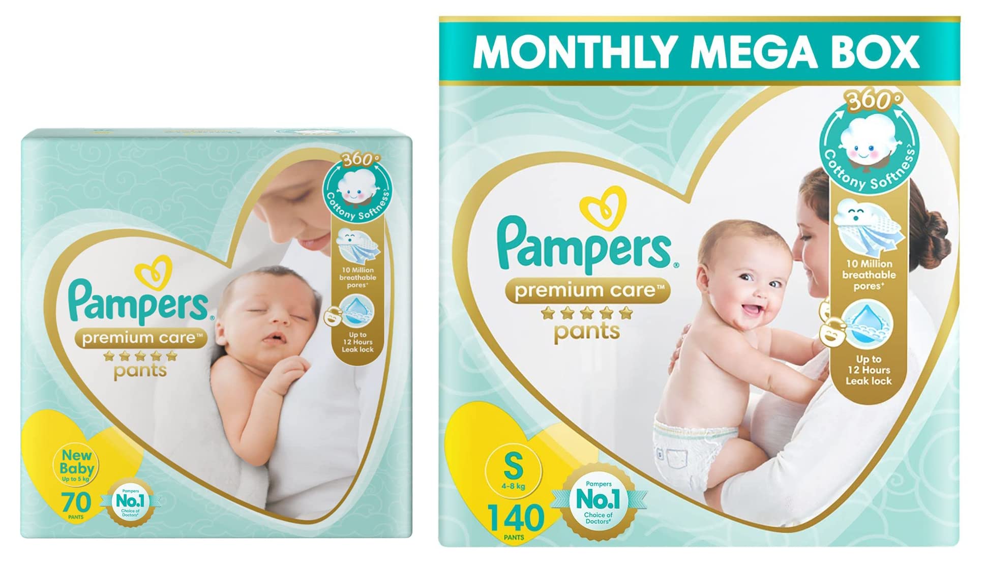 Pampers Premium Care New Born Diapers (70 Count) & Pampers Premium Care Pants Diapers Small 140 Count