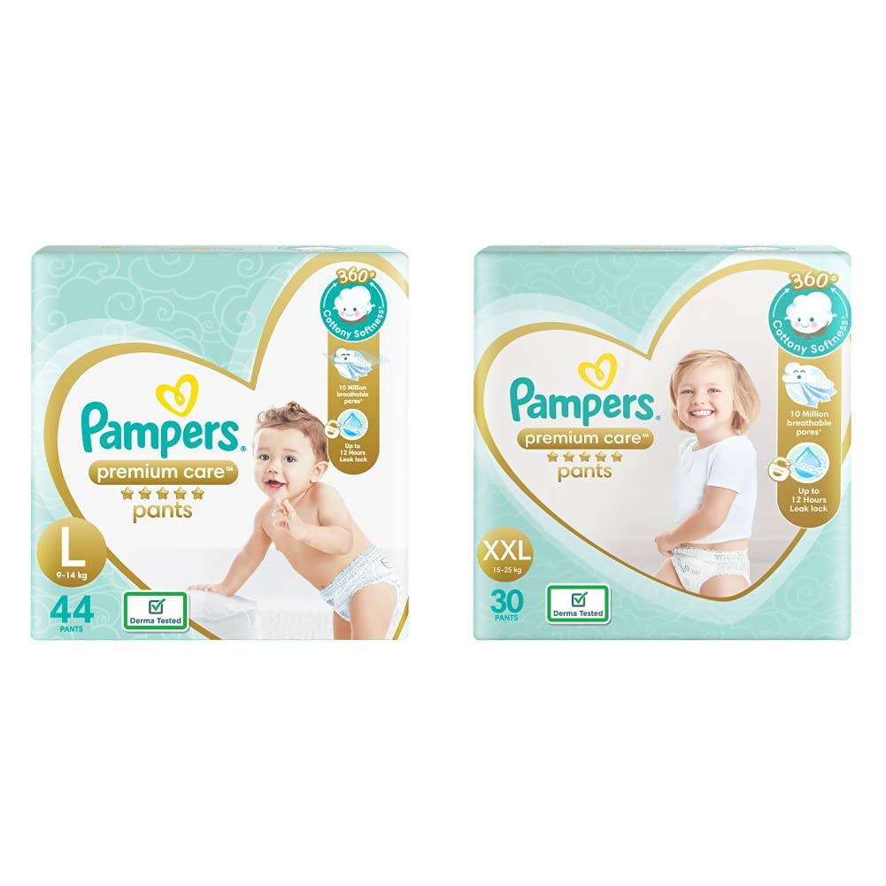 Pampers Premium Care Pants Diapers, Large, 44 Count & Pampers Premium Care Pants Diapers, XXL, 30 Count