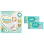Pampers Premium Care Pants Double Extra Large size baby diapers (XXL) 30 Count Softest ever Pampers pantsNew Pampers Premium Care Pants with 360 degree cottony softness gives your baby the ultimate comfort all day all night long. Pampers Premium Care Pants contain soothing lotion with Aloe Vera to protect your baby skin from rashes while its 10 million micropores allow your baby skin to breathe. Its 12-hour leak lock facility keeps your baby dry and away from wetness. Experience 5-Star comfort with unique added features like Wetness Indicator which turns Yellow to Blue indicating when you may change the diaper and a Disposal Tape to help you with easy disposal. Pampers Premium Pants are available in New-born (NB) S M L XL and XXL sizes.Pampers Baby Gentle Wet Wipes with Aloe Vera 144 WipesEvery little miracle deserves gentle protection mothers & doctors have always trusted Pampers to provide the care. Presenting Pampers Baby Wipes with Aloe which have the goodness of lotion with Aloe vera to protect against skin rashes & redness. Containing 97% pure water Pampers Wipes provide mild cleaning for baby supples skin just like cotton & water. Pampers wipes are safe as they are paraben-free and infused with Vitamin-E. They help restore the natural pH of your baby skin keeping it healthy and nourished. Pampers wipes are thick soft and strong ensuring a perfect gentle cleaning for the baby skin. Lastly the wipes come with a refreshing mild fragrance that you and your baby will surely love. Wet wipes tissues with lid 72 pcs combo pack.