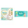 Pampers Premium Care Pants Extra Large size baby Diapers (XL) 36 Count Softest ever Pampers PantsNew Pampers Premium Care Pants with 360 degree cottony softness gives your baby the ultimate comfort all day all night long. Pampers Premium Care Pants contain soothing lotion with Aloe Vera to protect your baby’s skin from rashes while its 10 million micropores allow your baby’s skin to breathe. Its 12-hour leak lock facility keeps your baby dry and away from wetness. Experience 5-Star comfort with unique added features like Wetness Indicator which turns Yellow to Blue indicating when you may change the diaper and a Disposal Tape to help you with easy disposal. Pampers Premium Pants are available in New-born (NB) S M L XL and XXL sizes.Pampers Baby Aloe Wipes with Lid 72 WipesEvery little miracle deserves gentle protection – mothers & doctors have always trusted Pampers to provide the care. Presenting Pampers Baby Wipes with Aloe which have the goodness of lotion with Aloe vera to protect against skin rashes & redness. Containing 97% pure water Pampers Wipes provide mild cleaning for baby’s supples skin just like cotton & water. Pampers wipes are safe as they are paraben-free and infused with Vitamin-E. They help restore the natural pH of your baby’s skin keeping it healthy and nourished. Pampers wipes are thick soft and strong ensuring a perfect gentle cleaning for the baby’s skin. Lastly the wipes come with a refreshing mild fragrance that you and your baby will surely love. Wet wipes tissues with lid 72 pcs combo pack.