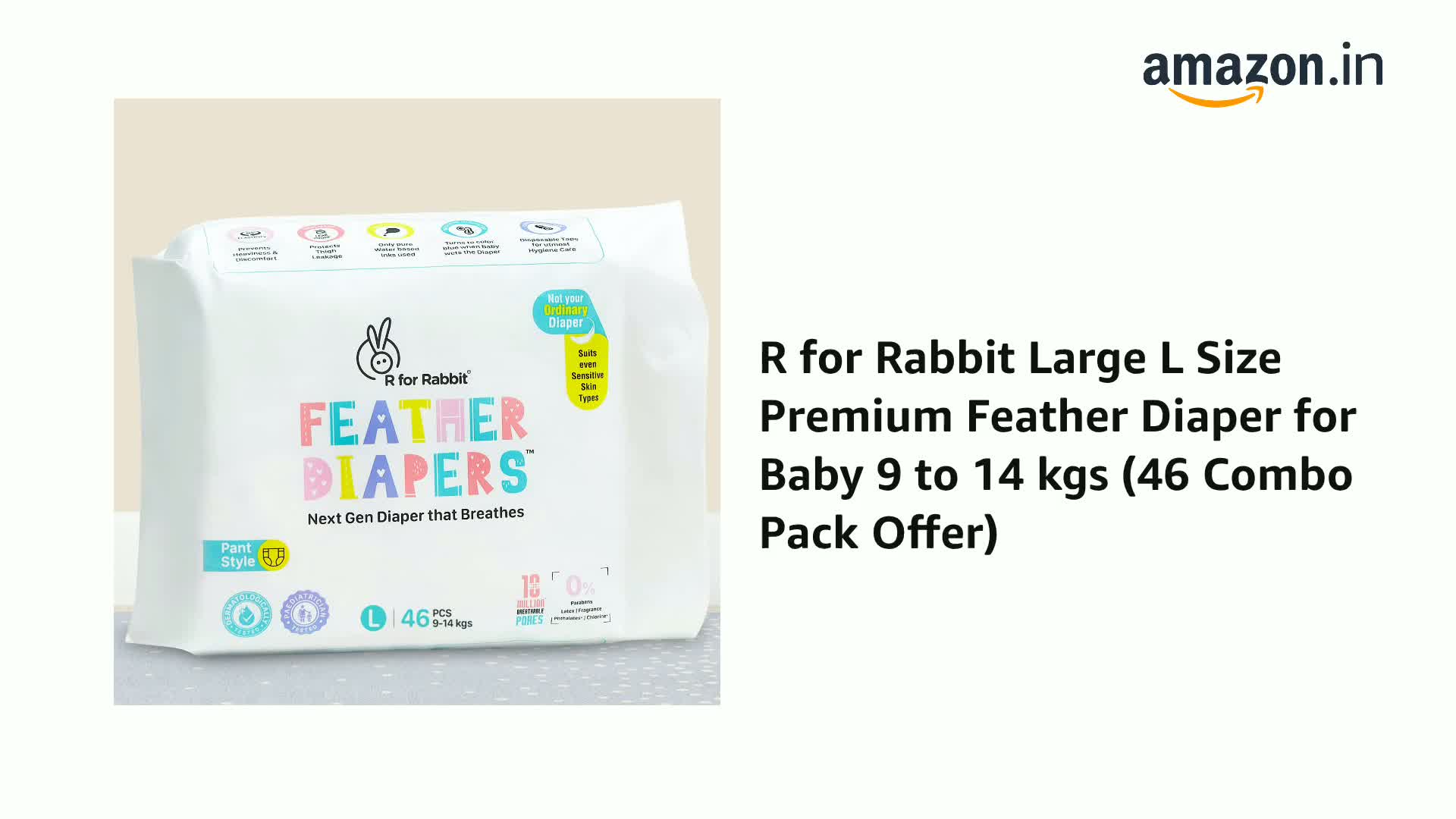 • Sizing Guide: R for Rabbit Feather Diaper with L Size is ideal for babies from 9-14kgs