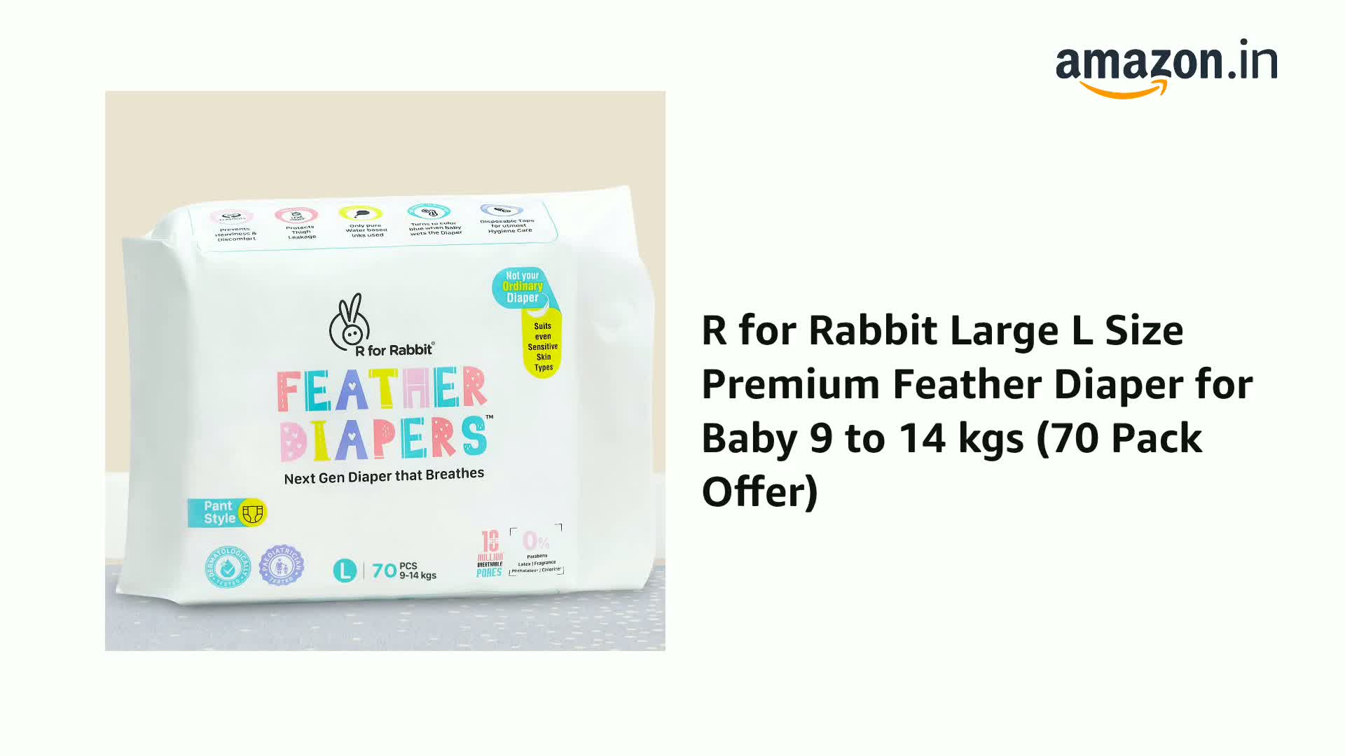 • Sizing Guide: R for Rabbit Feather Diaper with L Size is ideal for babies from 9-14kgs