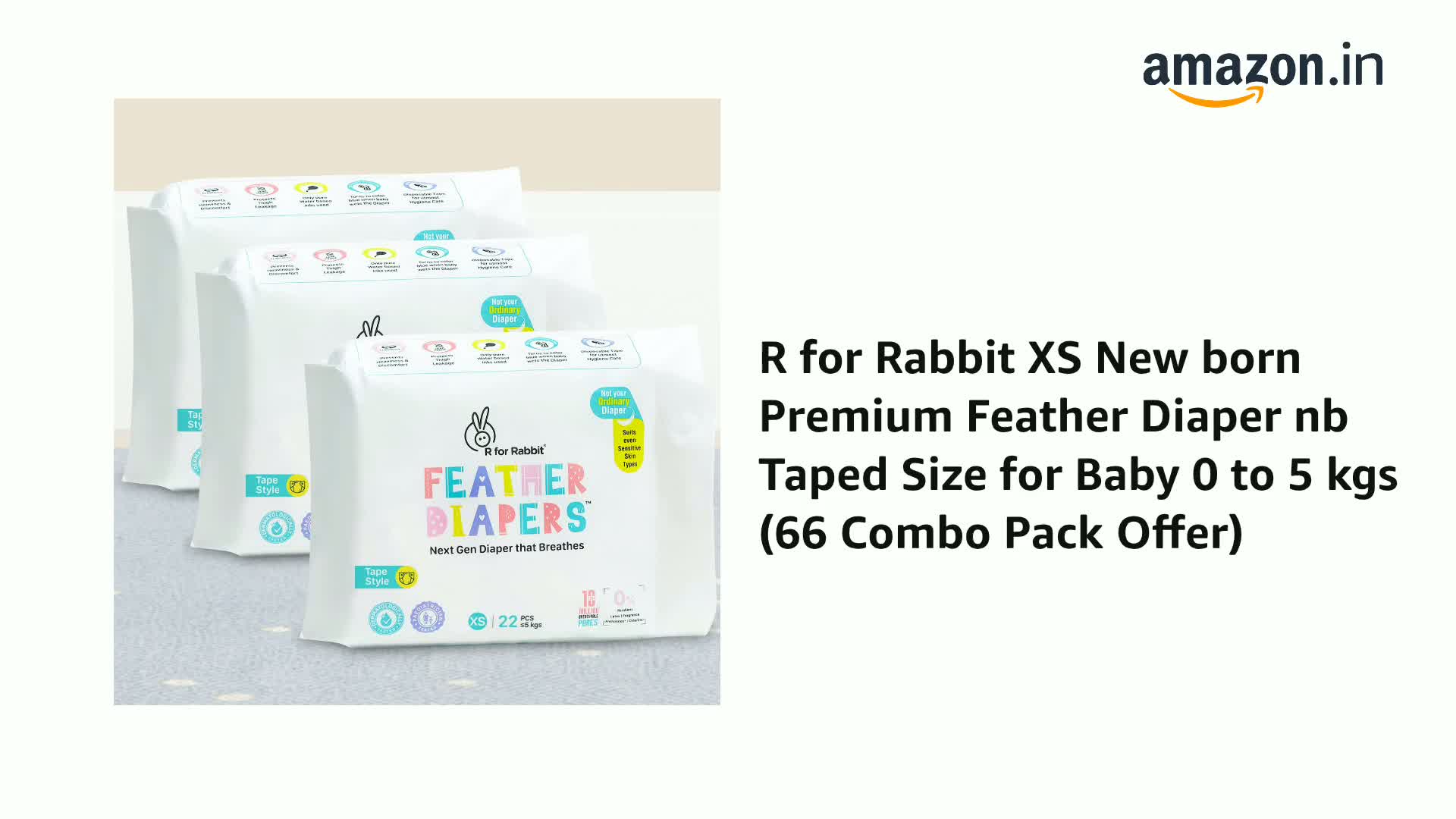 R for Rabbit XS New born Premium Feather Diaper nb Taped Size for Baby 0 to 5 kgs (66 Combo Pack Offer)