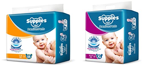 Supples Baby Pants Diapers Medium 72 CountThese diaper pants keep your baby comfortable in the day as well as in night. Their cottony soft material is gentle on your baby skin keeping their precious skin perfect.Supples Baby Pants Diapers X-Large 54 CountThese diaper pants keep your baby comfortable in the day as well as in night. Their cottony soft material is gentle on your baby skin keeping their precious skin perfect.
