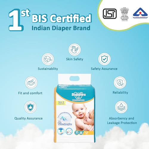 SUPPLES PREMIUM DIAPER PANTS: Choosing the diaper for your baby is an important step in ensuring your little one comfort during the day as well as overnight. We understand that nothing is more important than the comfort of your little baby. With Supples Premium diaper pants we want to keep your baby comfortable both in day as well as in night thus delivering happiness to every doorstep. Choosing the right diaper size based on baby weight is important. The diaper capacity may vary among babies depending on the volume of pee and posture. Available in sizes NB S M L XL XXL