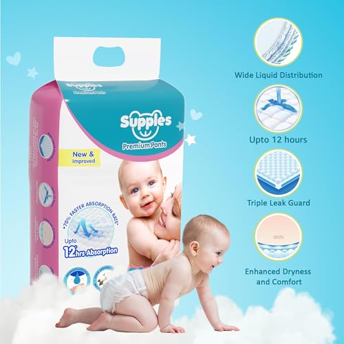 • SUPPLES PREMIUM DIAPER PANTS: Choosing the diaper for your baby is an important step in ensuring your little one comfort during the day as well as overnight. We understand that nothing is more important than the comfort of your little baby. With Supples P