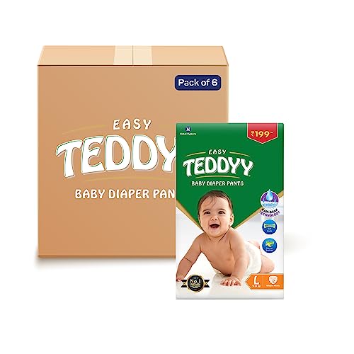 TEDDYY Baby Diapers Pants Easy Large 72 Count (Pack of 6) 9-14 kgs 12 hrs Leak Protection Anti - Bacterial