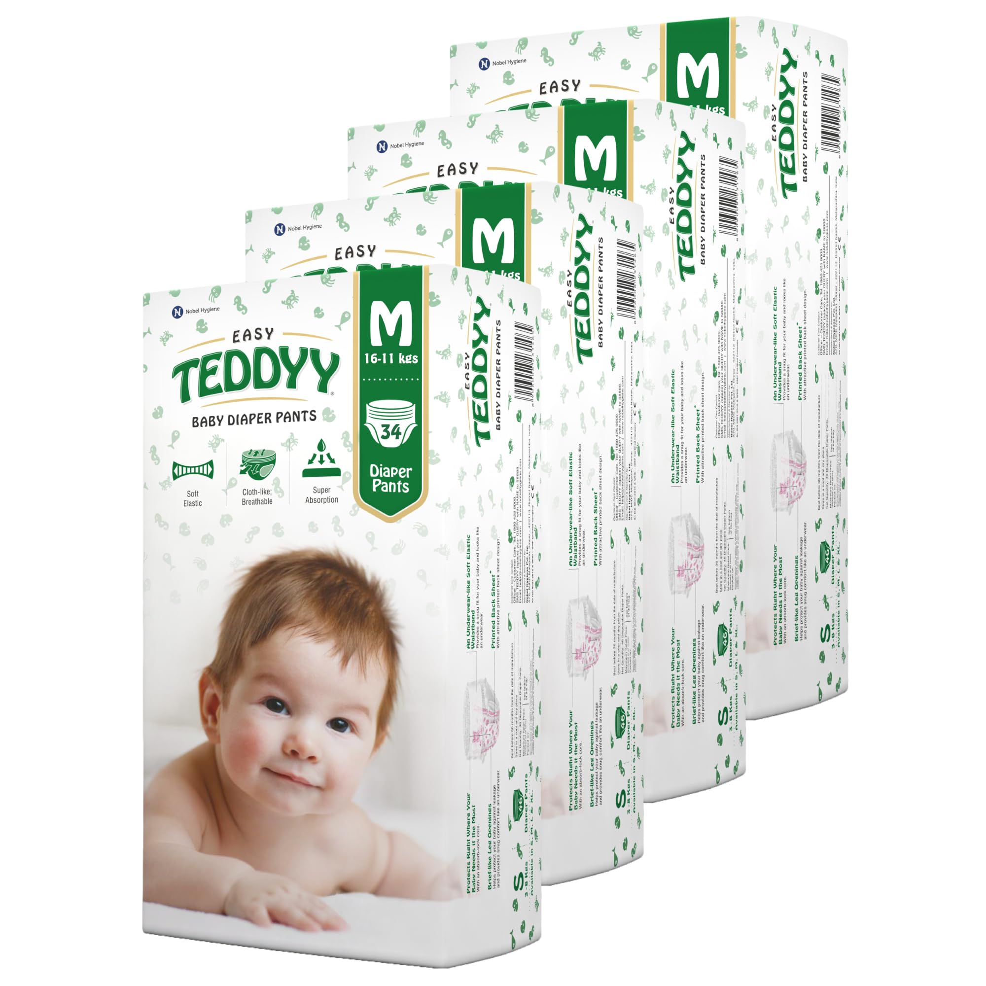 TEDDYY Baby Diapers Pants Easy Medium 136 Count (Pack of 4)