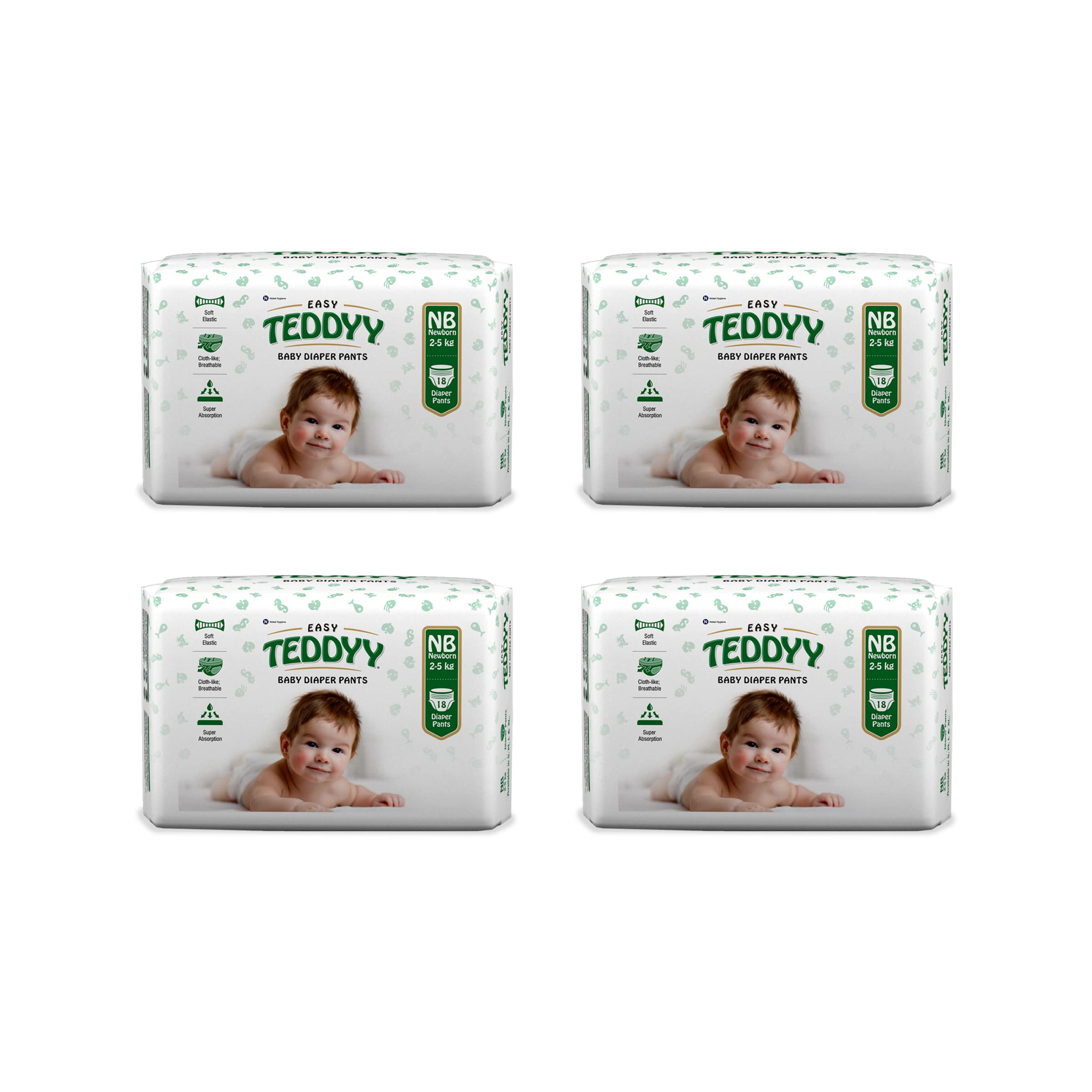 TEDDYY Baby Diapers Pants Easy New Born 72 Count (Pack of 4), Upto 5 kgs, 12 hrs Leak Protection, Anti - Bacterial