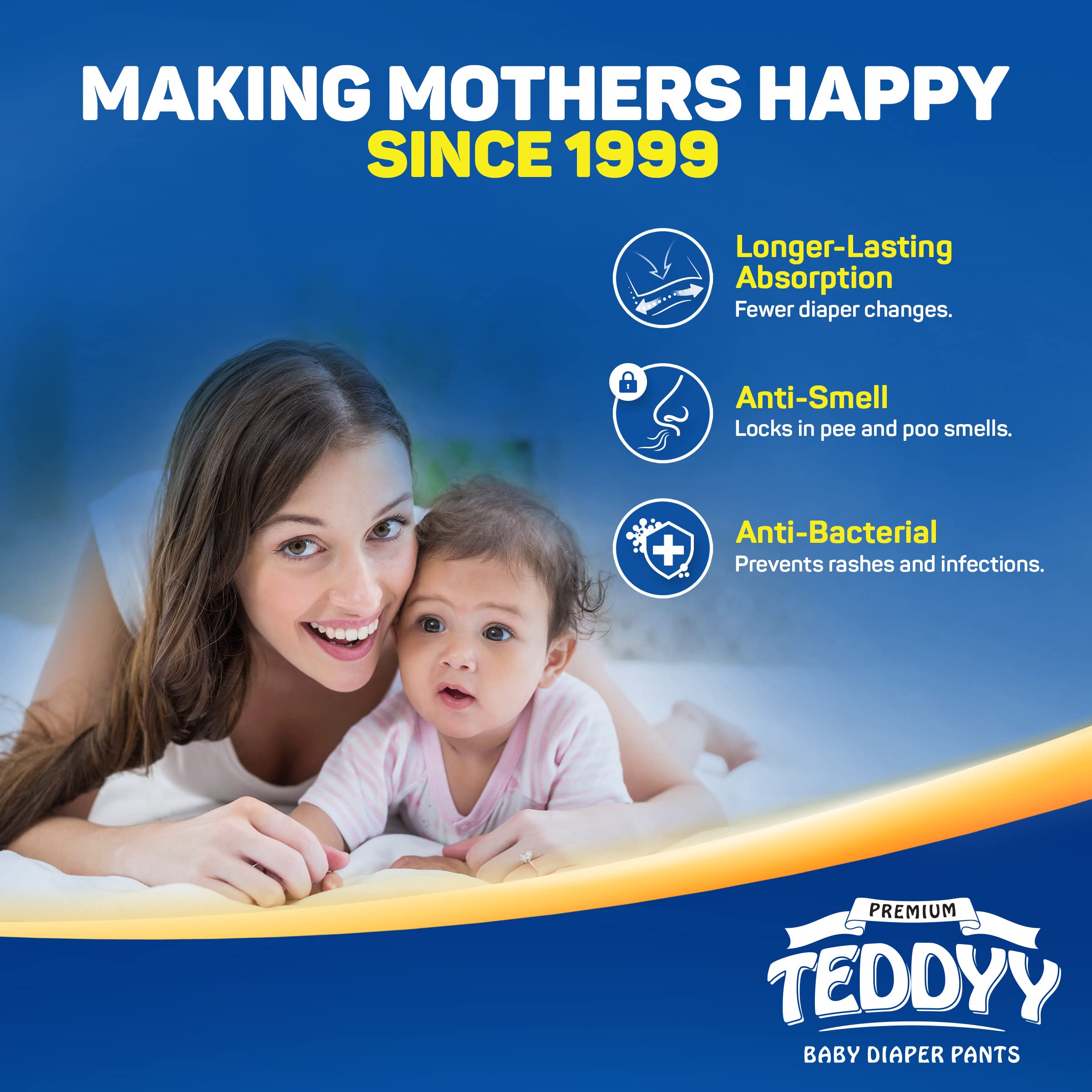 TEDDYY Baby Diapers Pants Premium Large 84 Count (Pack of 7) 9-14 kgs Long Lasting Absorption Anti - Bacterial