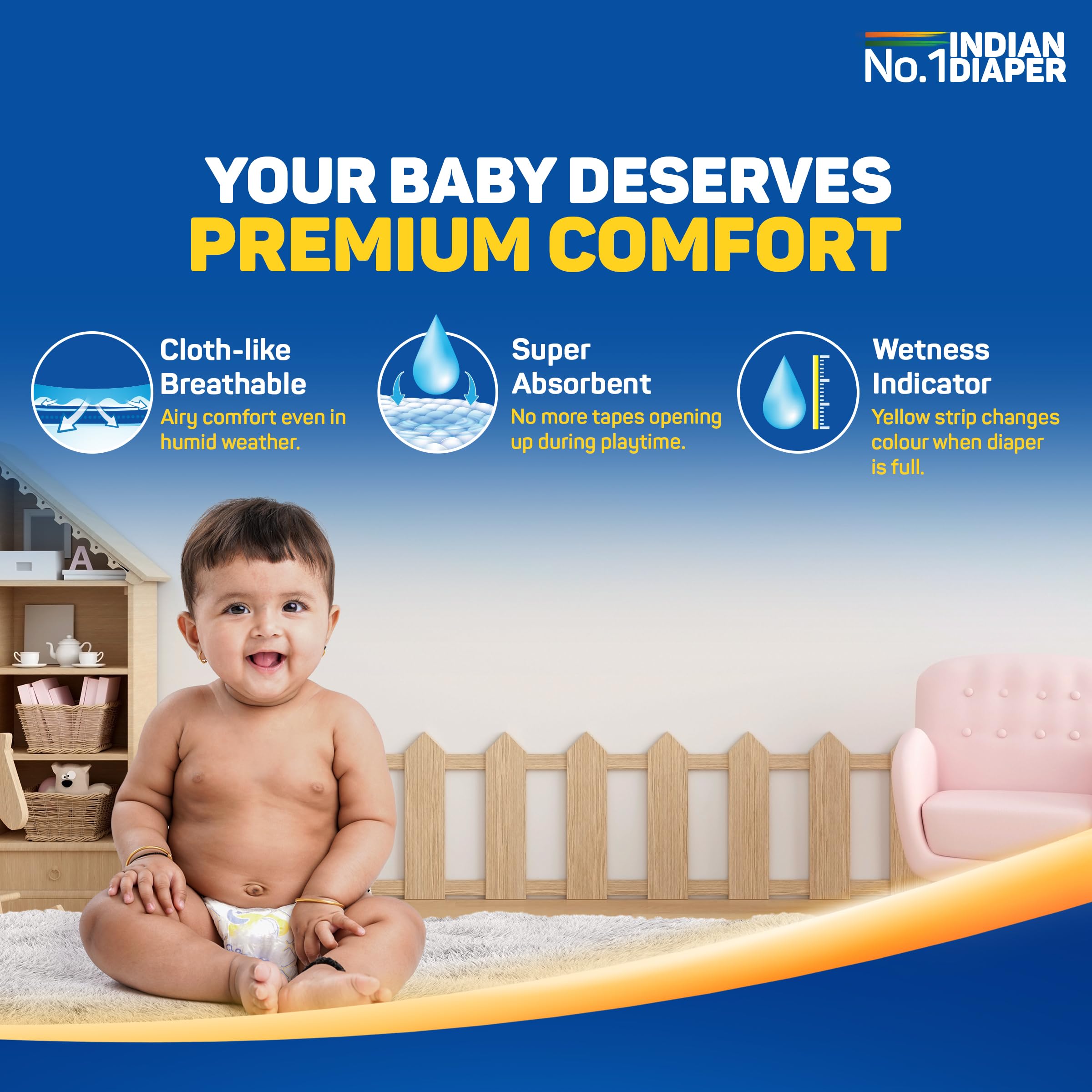 WETNESS INDICATOR: Yellow strip changes colour when diaper is full.