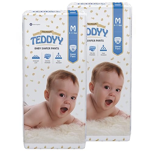 TEDDYY Baby Premium Medium Diaper Pants 72 Count (Pack of 2) 7-12 kgs Long Lasting Absorption Anti - Bacterial