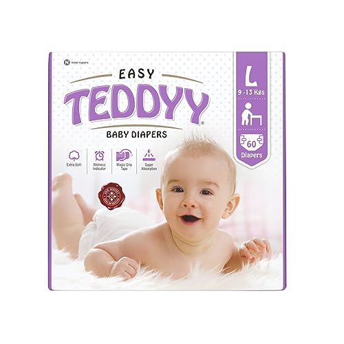 TEDDYY Easy Baby Diapers Large (10-12 Months) - 60 Count 9-13 kgs Long Lasting Absorption Anti - Rash