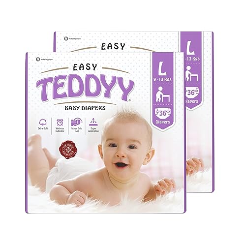TEDDYY Easy Baby Diapers Large (10-12 Months) - 72 Count, 9-13 kgs, Long Lasting Absorption, Anti - Rash
