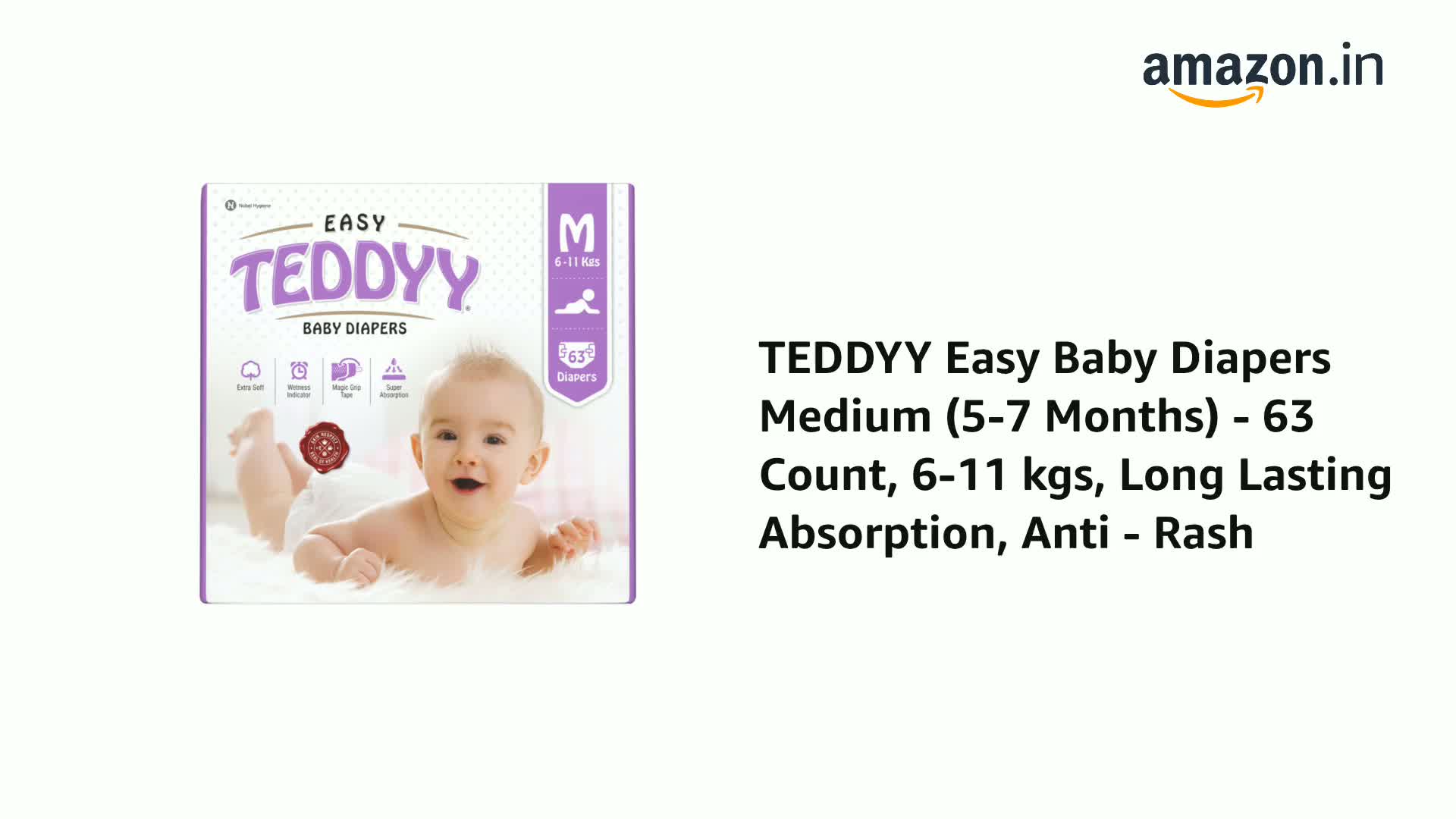TEDDYY Easy Baby Diapers Medium (5-7 Months) - 63 Count 6-11 kgs Long Lasting Absorption Anti - Rash