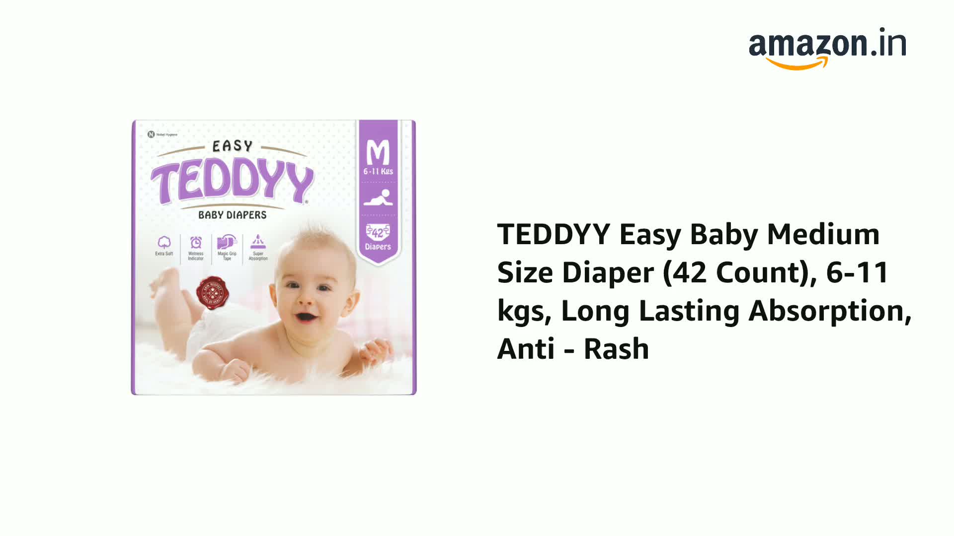 TEDDYY Easy Baby Medium Size Diaper (42 Count), 6-11 kgs, Long Lasting Absorption, Anti - Rash