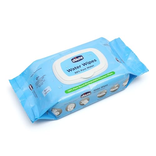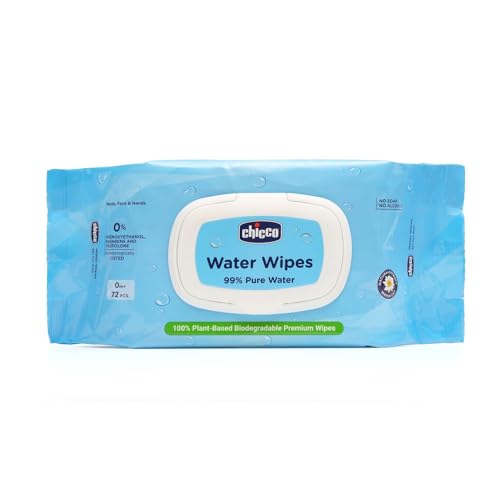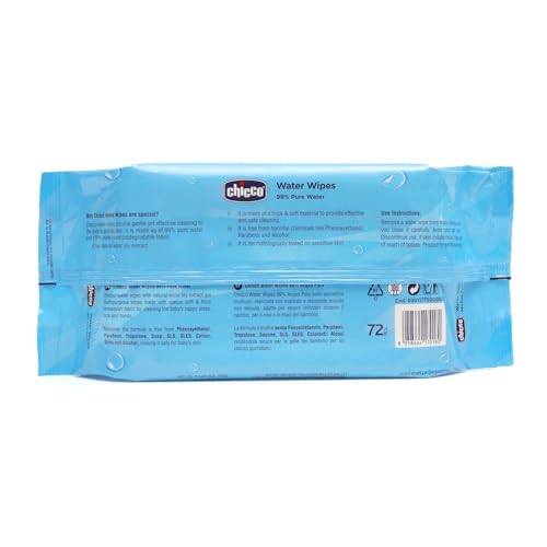 Chicco Water Wipes - 99% Pure Water Wipes 72 Pcs | 100% Plant Based | Free From Phenoxyethanol, Parabens & Alcohol