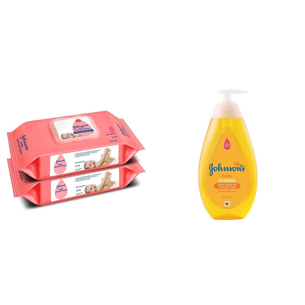 Johnson's Baby Skincare Wipes with Lid Pack of 2 72s x 2 (144 Wipes) White Large (Model: Baby Wipes)Did you know? Repeated use of cloth and water can erode your baby's skin's natural protective layer. That's why Johnson's Baby Skincare Wipes are specially designed using innovative water-saturated fibre which packs 3 times the weight of moisturizing lotion to keep your baby's skin soft. Each wipe is enriched with moisturizing ingredients that help protect against redness rash and soothe skin by removing flakiness of dry and cracked skin. Johnson's Baby Skincare Wipes as mild to the skin as pure water provide soft and gentle care for delicate newborn skin. Moms trust Johnson's - always mild gentle and effective.Johnson's Baby No More Tears Baby Shampoo 500mlWhen a baby is born her hair are delicate and her eyes have slower blink reflexes vs. Adult eyes. Thats why we perfected our formulas over 125 years so they are now more gentle to give her the best care. Johnson's baby shampoo is specially designed to be as gentle and mild to the eyes as pure water. Johnson's baby no more tears shampoo is free of soap. It makes the rinsing of the hair very easy. You can clean the scalp and hair perfectly without leaving any adverse impact on the protective layer. Its anti-fungal and anti-bacterial properties prevent allergies or infections. Its no more tears formula cleanses gently and easily leaving your babys hair soft and healthy. Moms trust johnson's - always mild gentle and effective.