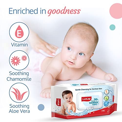 LuvLap Water Baby Wipes are made for gentle cleansing of the gentlest of skin. These wipes contain no fragrance and are purely 99% of water so that there is nothing that can cause even the slightest damage to the baby's skin. They are completely free of alcohol and harmful parabens. The pack also comes with a lid seal to ensure the wetness remains consistent over time. After all your baby's safety is our prime concern.