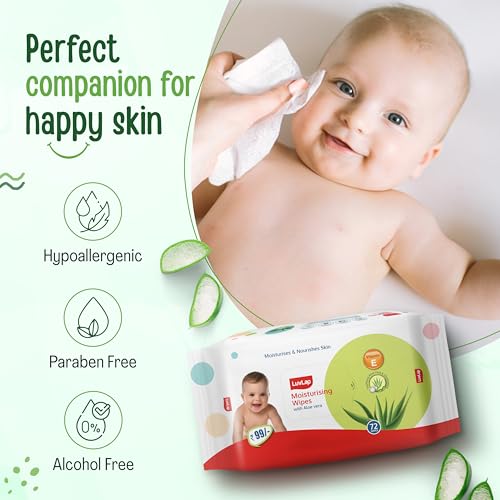 LuvLap Moisturizing Baby Wipes with aloe vera are the perfect wipes for your baby's delicate skin. Enriched with the goodness of Aloe Vera & Chamomile they are completely free of alcohol and harmful parabens. After all your baby's safety is our prime concern.