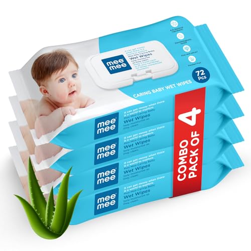 HomeBabyDiaperingBaby WipesMee Mee Wet Wipes for Baby Skin with Aloe Vera Paraben Free, Fragrance Free, pH Balanced, Dermatologically Safe, Baby Wipes Combo, 72 Wipes/Pack With Lid (Pack of 4 Wet Wipes)