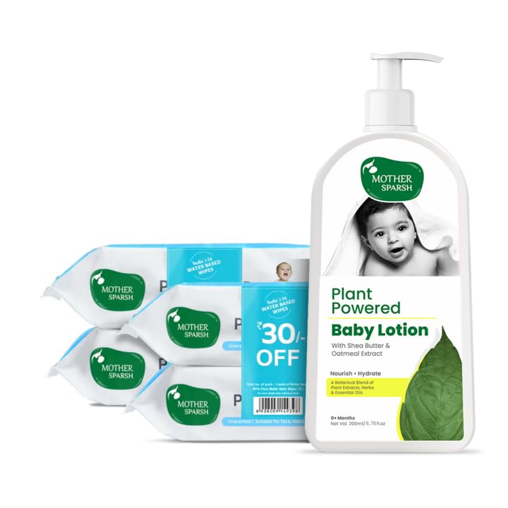 Mother Sparsh 99% Pure Water Baby Wipes & Plant Powered Natural Baby Lotion 200ml | Unscented Wipes