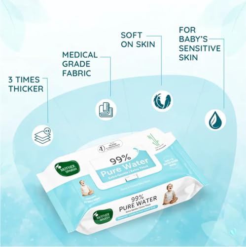 99% PURE WATER WIPES: Mother Sparsh 99% Pure Water Wipes are 3x thicker medical grade fabric with pure water content. Our Pure Water Wipes for babies & newborn are gentle on sensitive skin and cleans without causing any diaper rash or skin allergy.