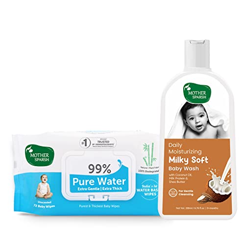 Mother Sparsh 99% Pure Water Baby Wipes, (Unscented) | 72 Pcs | With Milky Baby Lotion 200ml