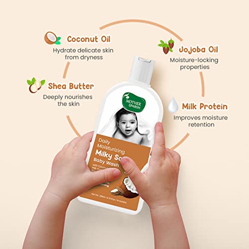 Mild Cleansing Formula: The Milky Soft Formulation of Baby Wash is a blend of mild ingredients like Milk Protein Coconut Oil Shea Butter & Jojoba Oil that cleanse the babyâs skin without causing post-shower dryness or skin allergies. The fusion of milk