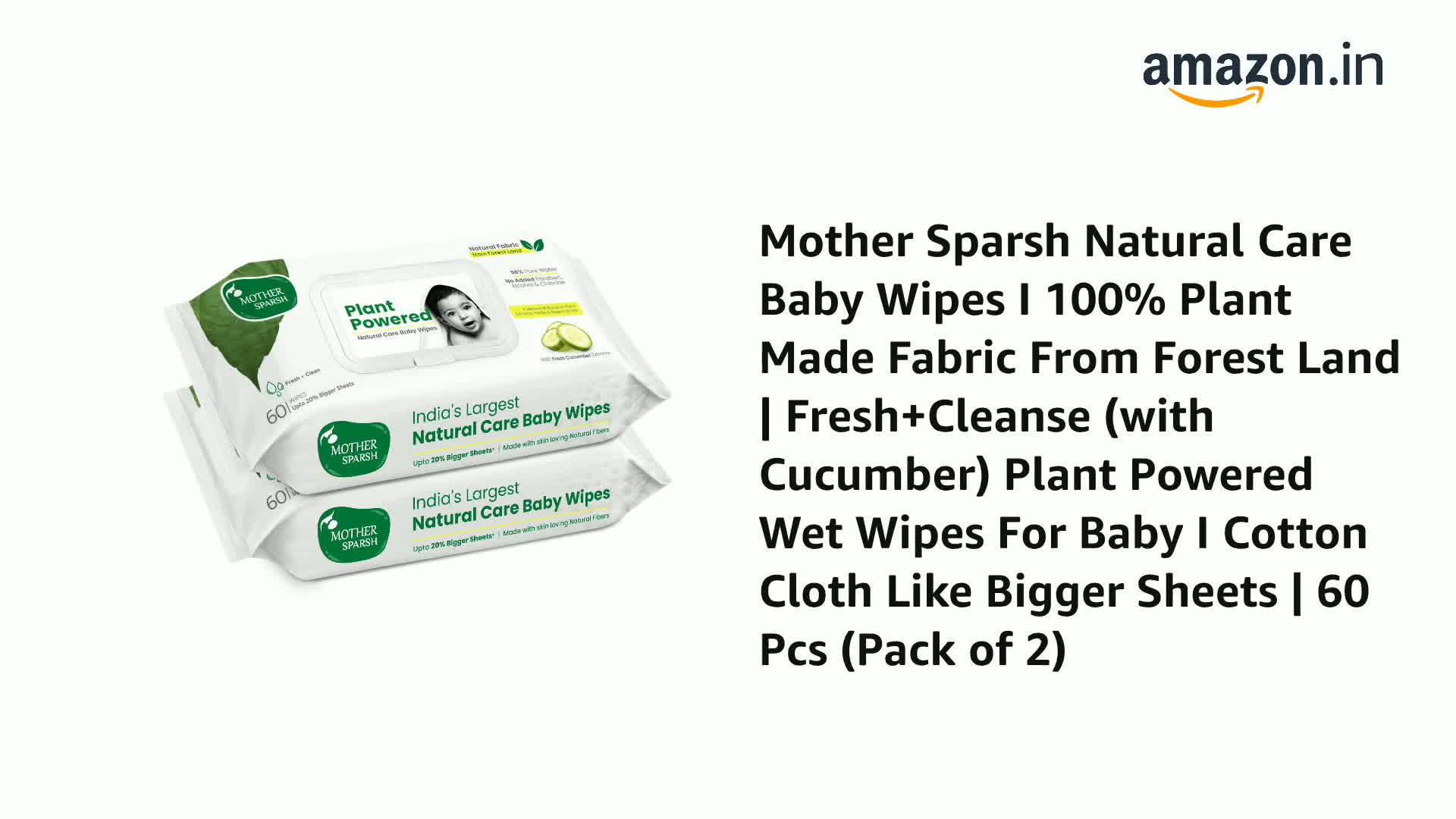 HomeBabyDiaperingBaby WipesMother Sparsh Natural Care Baby Wipes I 100% Plant Made Fabric From Forest Land, Fresh + Cleanse (with Cucumber) Plant Powered Wet Wipes For Baby I Cotton Cloth Like Bigger Sheets | 60 Pcs