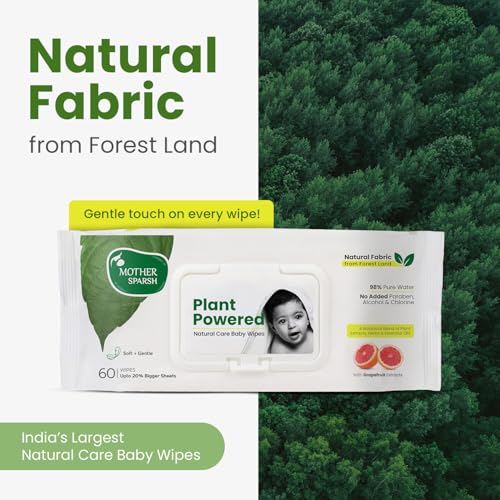 Mother Sparsh Plant Powered Cloth like Natural Baby Wipes with 98% Water | Mildly Scented | 60pc (With Grapefruit Extract)