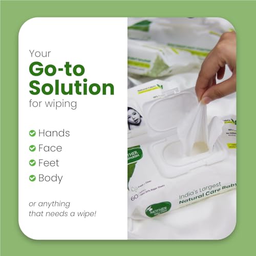 Mother Sparsh Plant Powered Cloth like Natural Baby Wipes with 98% Water & Grapefruit Extract | Mildly Scented | 60pc each (Pack of 2)
