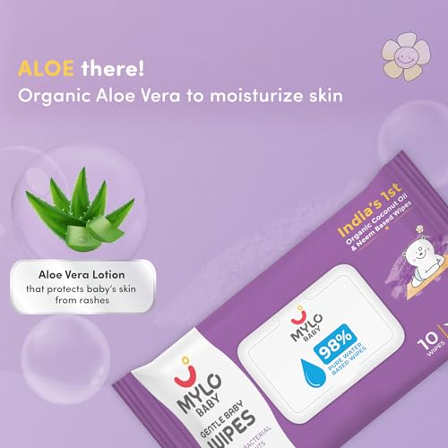 HomeBabyDiaperingBaby WipesMylo Gentle Baby Wipes Travel Pack with Organic Coconut Oil & Neem Pack of 12 (120 Count) Ideal for Your Baby's Everyday Skin Care Routine