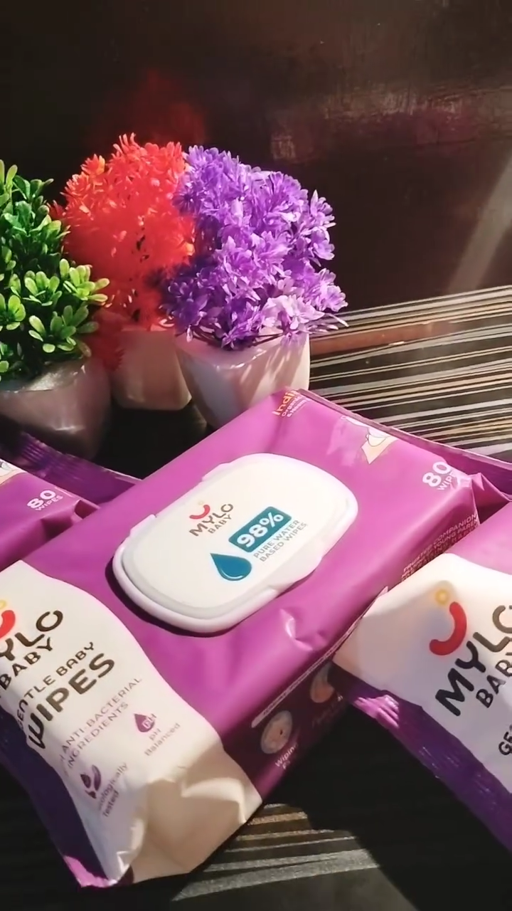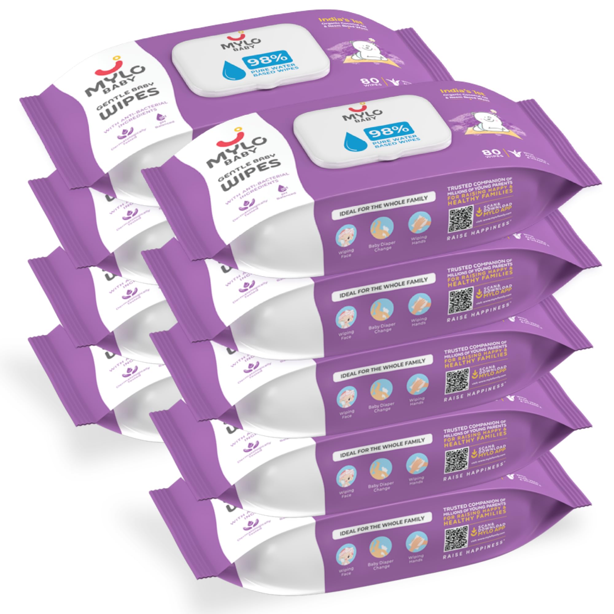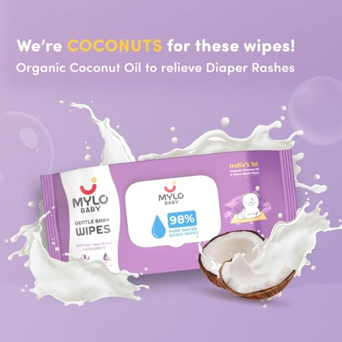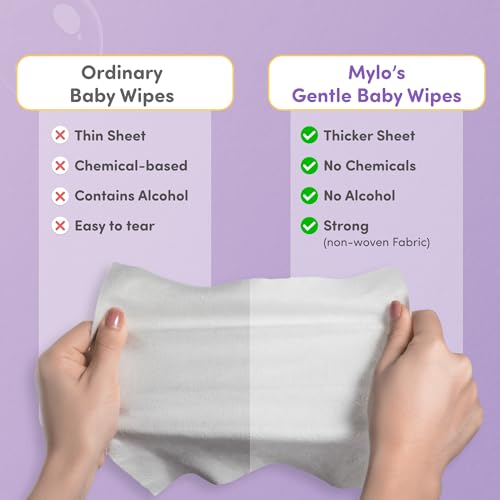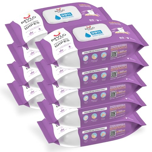 HomeBabyDiaperingBaby WipesMylo Gentle Baby Wipes with Lid (80 Wipes x 9 Pack - 720 Water Wipes) | Natural Wet Wipes with Organic Coconut Oil & Neem| Cotton Cloth with Extra Thick