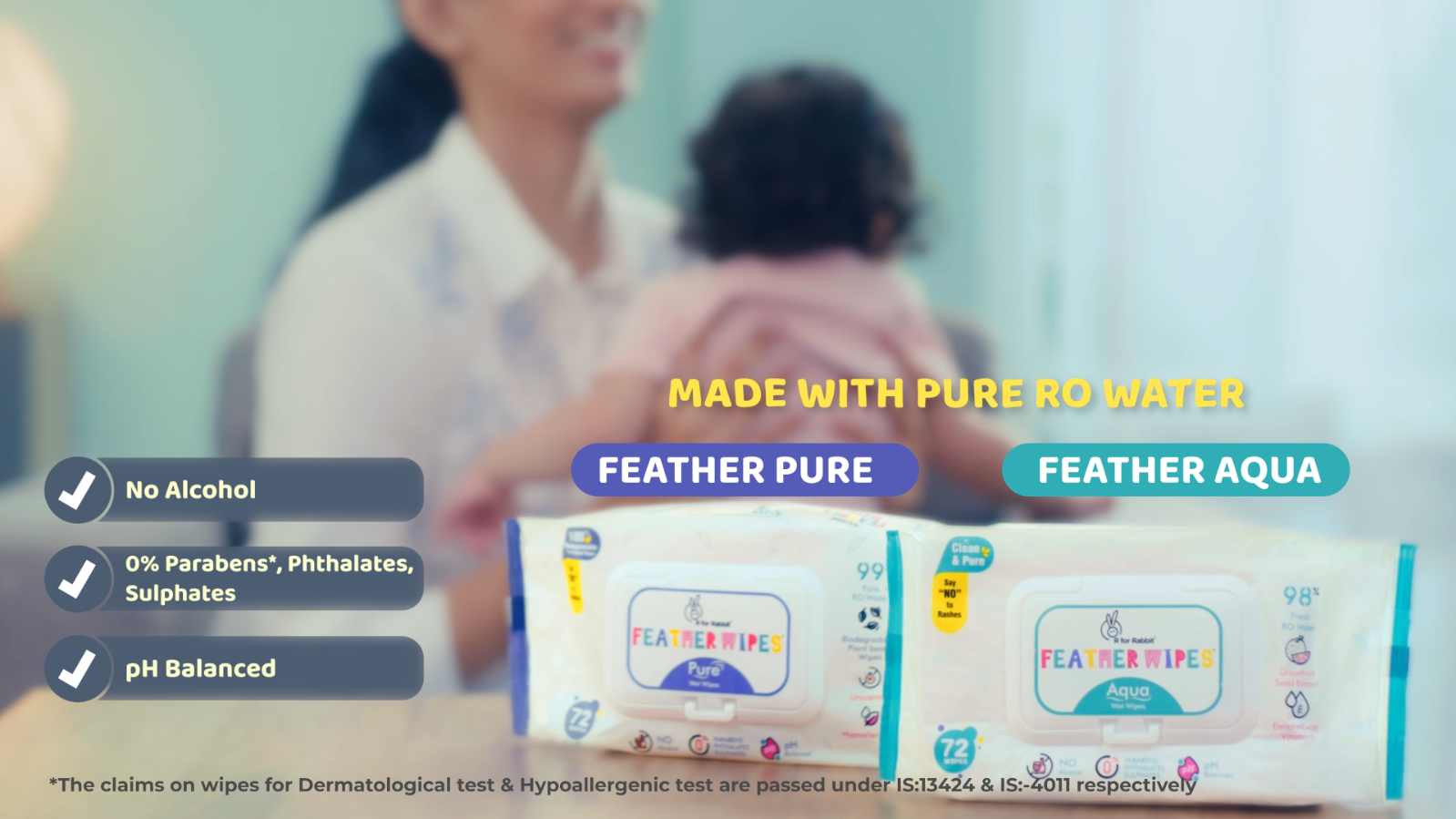 • Safety 1st: R for Rabbit Feather Aqua Wipes are made with 98% Fresh RO Water. These are clean & pure and feel as soft as feathers preventing any rashes.