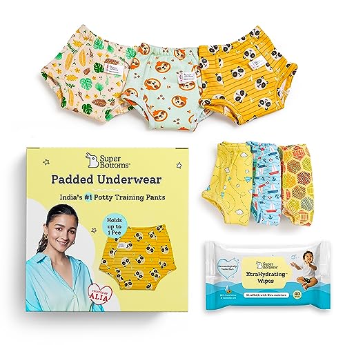 superbottoms 6 Padded Underwear + Xtrahydrating Wipes-40 Pack|3X Thicker Premium Wet Wipes|98% Pure Water|Potty Training Pants|3-Layers Of Padding&Superdryfeel Layer|Pull-Up Style-Size0Baby 1 Count