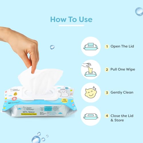 SuperBottoms 99% Pure Water Baby Wet Wipes - Skin-Friendly 5.5 pH Formula - Gentle & Biodegradable Wet Wipes for Baby - Dermatologically Tested - Thick & Durable (Pack of 2, 144 pcs)