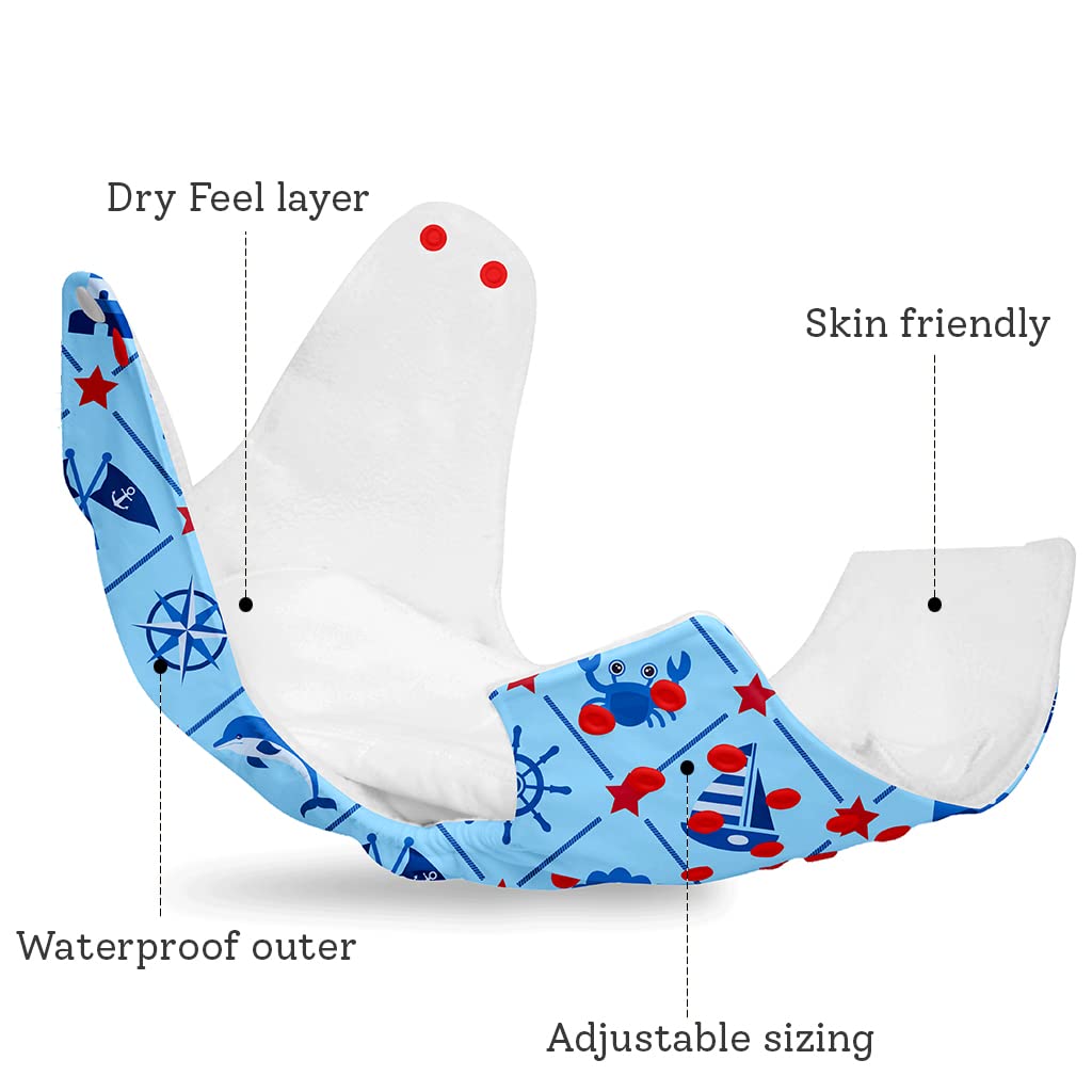 High Quality CPSIA Tested OEKO Tex Certified - Waterproof washable reusable Cloth diaper in one size. Both outer shell and soaker are washable upto 250+ times. Adjustable diaper in 4 sizes that can be used for 3 months- 3 years (5 kg- 17 kg) babies/ toddl