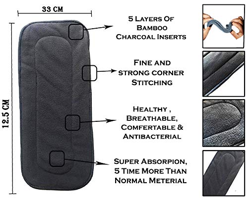 Babymoon Premium Bamboo 5 Layer Charcoal Wetfree Reusable Washable Cotton Diaper Nappy Inserts (Set of 3.)