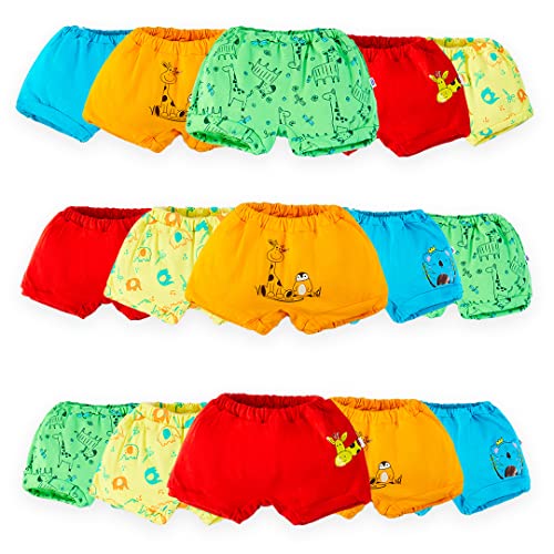 superbottoms Basic™ Bloomer| Unisex, 100% Pure Cotton Innerwear | Breathable & Soft Underwear | Baby Bloomers for 6m – 9m | Wonder Wild I Pack of 15