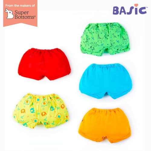 superbottoms Basic™ Bloomer| Unisex, 100% Pure Cotton Innerwear | Breathable & Soft Underwear | Baby Bloomers for 12m – 18m | Wonder Wild I Pack of 15