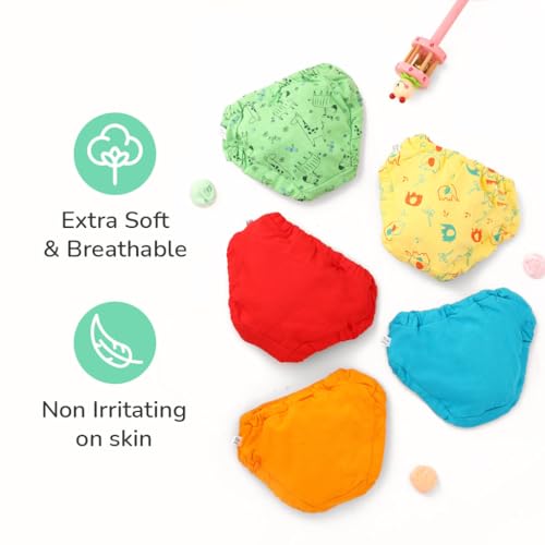 superbottoms Basic™ Brief for Kids | Unisex, 100% Pure Cotton Innerwear | Breathable & Soft Kids Underwear | Baby Brief I Pack of 5