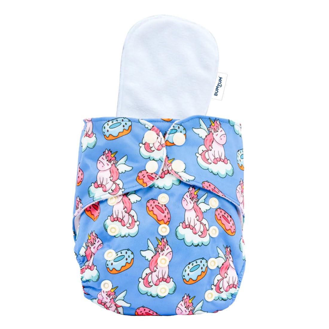 BUMTUM Cloth Diapers for Babies 0 to 3 Years | Pack of 1 with Inserts | Reusable Diaper for New Born Baby Cloth Diapers 5hrs Absorbency Freesize Washable Cotton Extra Soft (Unicorn)