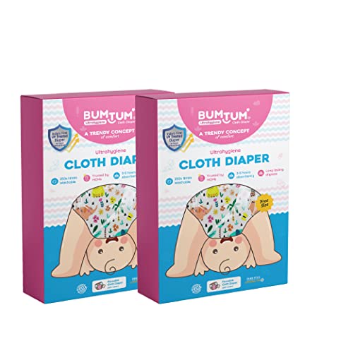 HomeBabyDiaperingCloth DiapersBumtum Cloth Diapers for Babies 0 to 3 Years | Pack of 2 with Inserts | Reusable Diaper for New Born Baby, Cloth Diapers, 5hrs Absorbency, Freesize, Washable, Cotton, Extra Soft (Jungle Print)